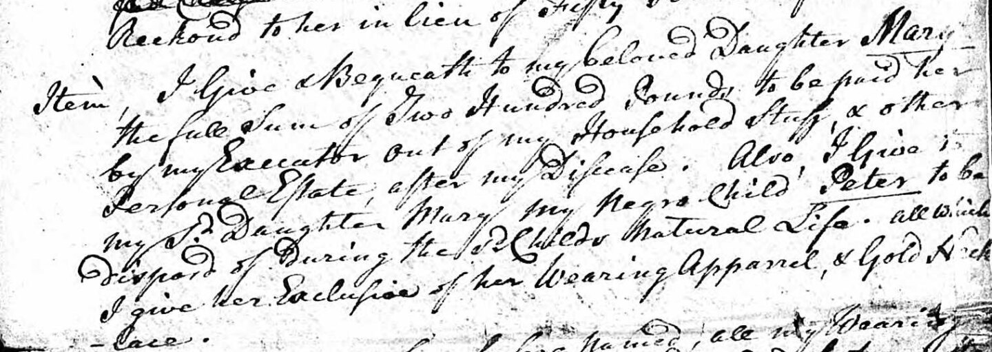 Nathan Jewett’s bequest to his daughter Mary of “my Negro Child Peter to be disposed of during the sd Childs Natural Life” (Connecticut County, District and Probate Courts, Probate Packets, Huntley, R-Johnes, Elizabeth, 1675-1850. Ancestry.com. Connecticut, U.S., Wills and Probate Records, 1609-1999 [database on-line]. Lehi, UT, USA: Ancestry.com Operations, Inc., 2015)