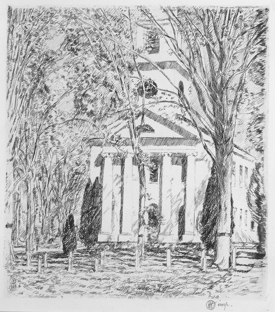 Childe Hassam (1859-1935), Church at Old Lyme, 1924. Etching, Florence Griswold Museum; Given in memory of Daniel Woodhead, Jr., and Henry B. Day