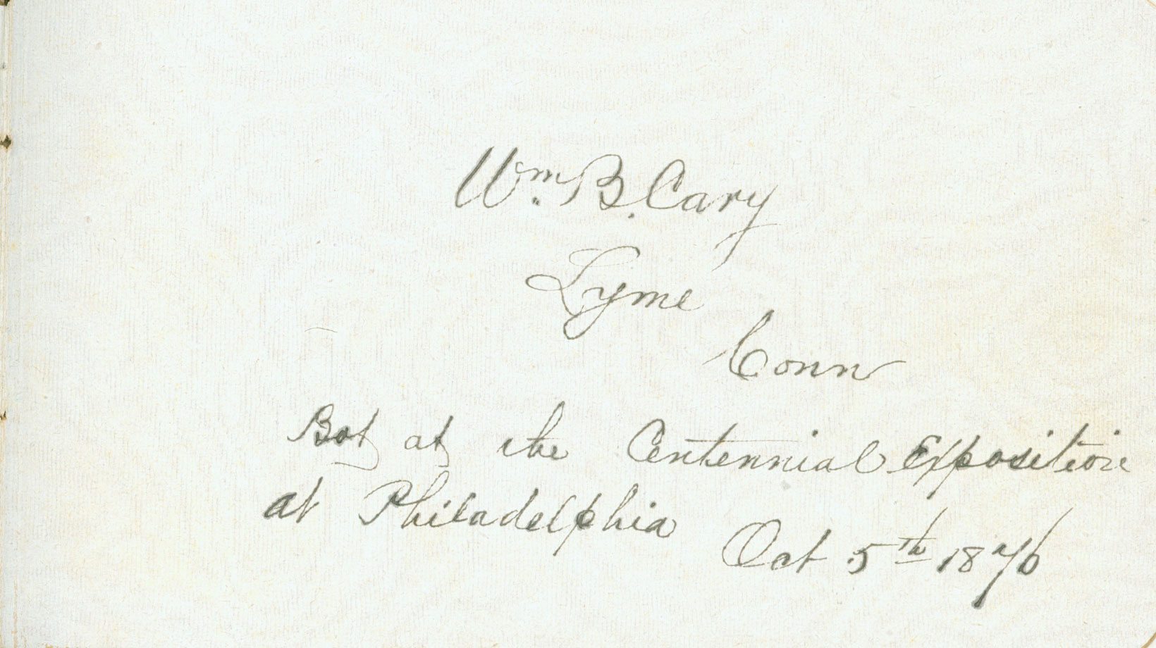 Rev. Cary (1841–1923), a former Civil War cavalry officer and Old Lyme’s Congregational Church minister from 1875 to 1884, purchased his autograph book as a souvenir at the Centennial Exposition in Philadelphia in 1876.