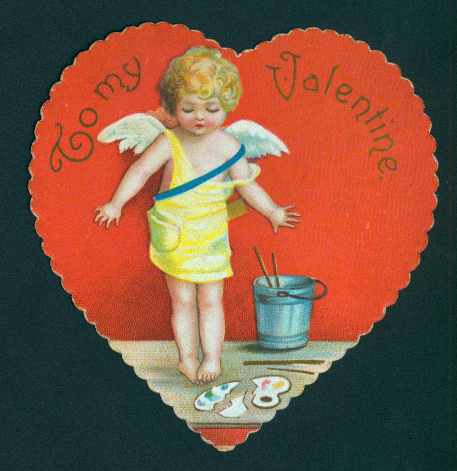 In the 1880s elaborate hand-made Valentines featured precisely detailed and boldly sentimentalized cut-outs of Cupids or fashionably dressed children glued atop multiple layers of colored paper and patterned lace.