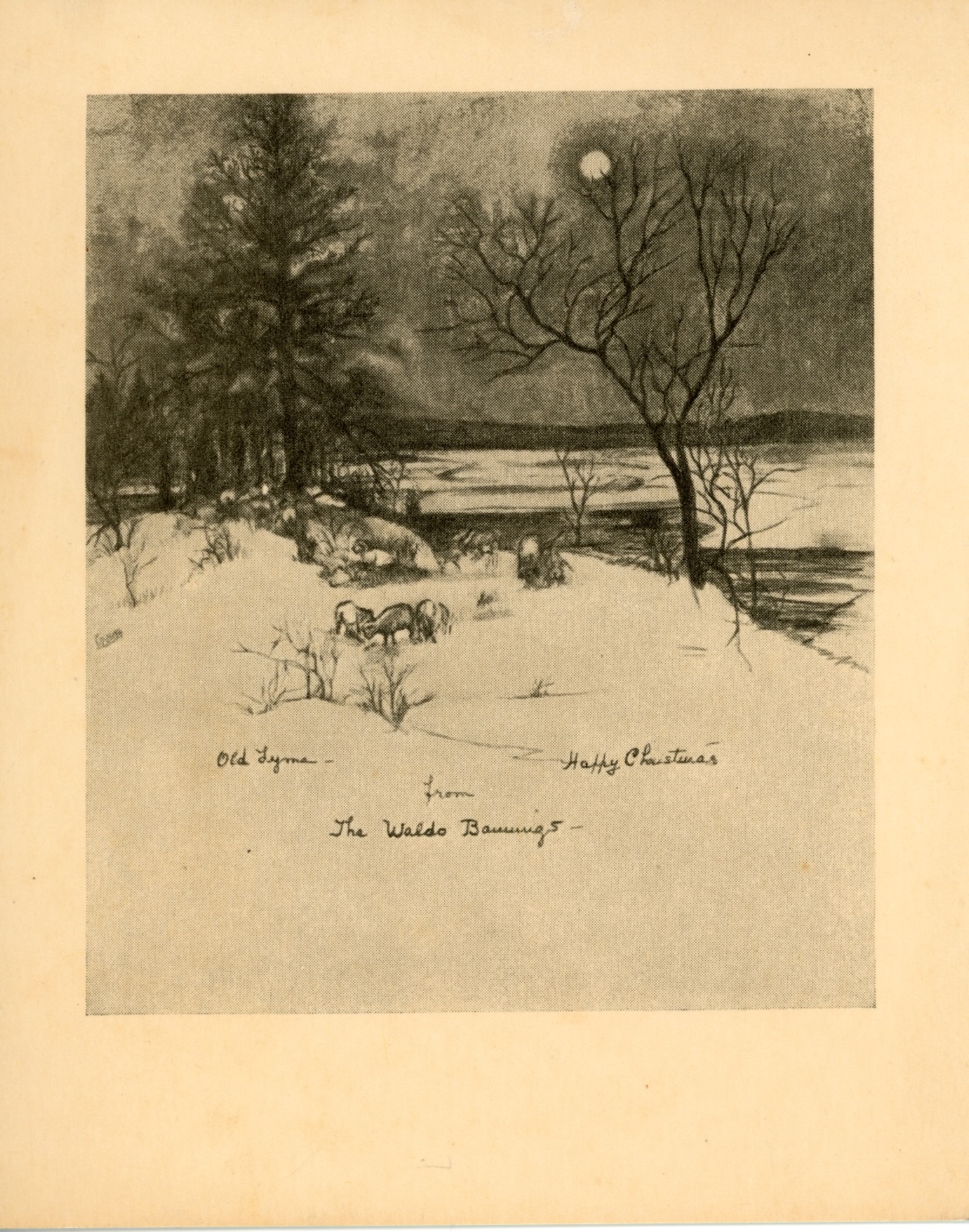 Waldo Banning, Old Lyme, Happy Christmas, from the Waldo Bannings, n.d. Lithograph. Jack Hoffman Papers, Lyme Historical Society Archives, Florence Griswold Museum