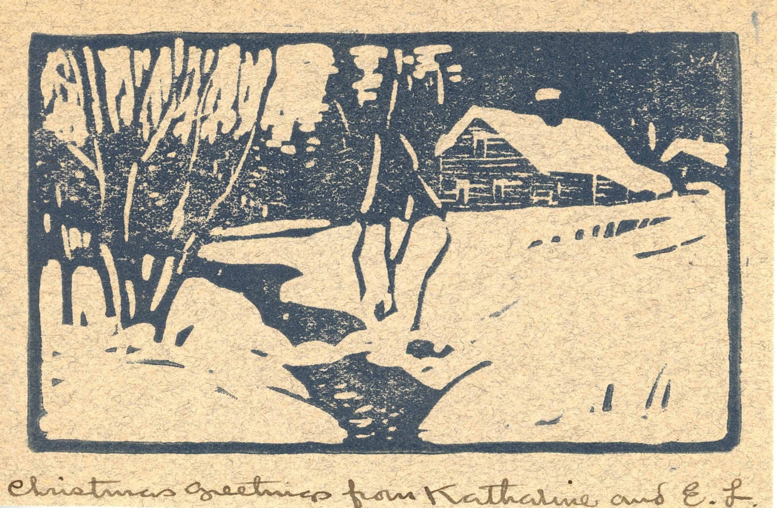 Everett L. Warner, Christmas Greetings from Katharine and E. L., n.d. Linocut. Jack Hoffman Papers, Lyme Historical Society Archives, Florence Griswold Museum