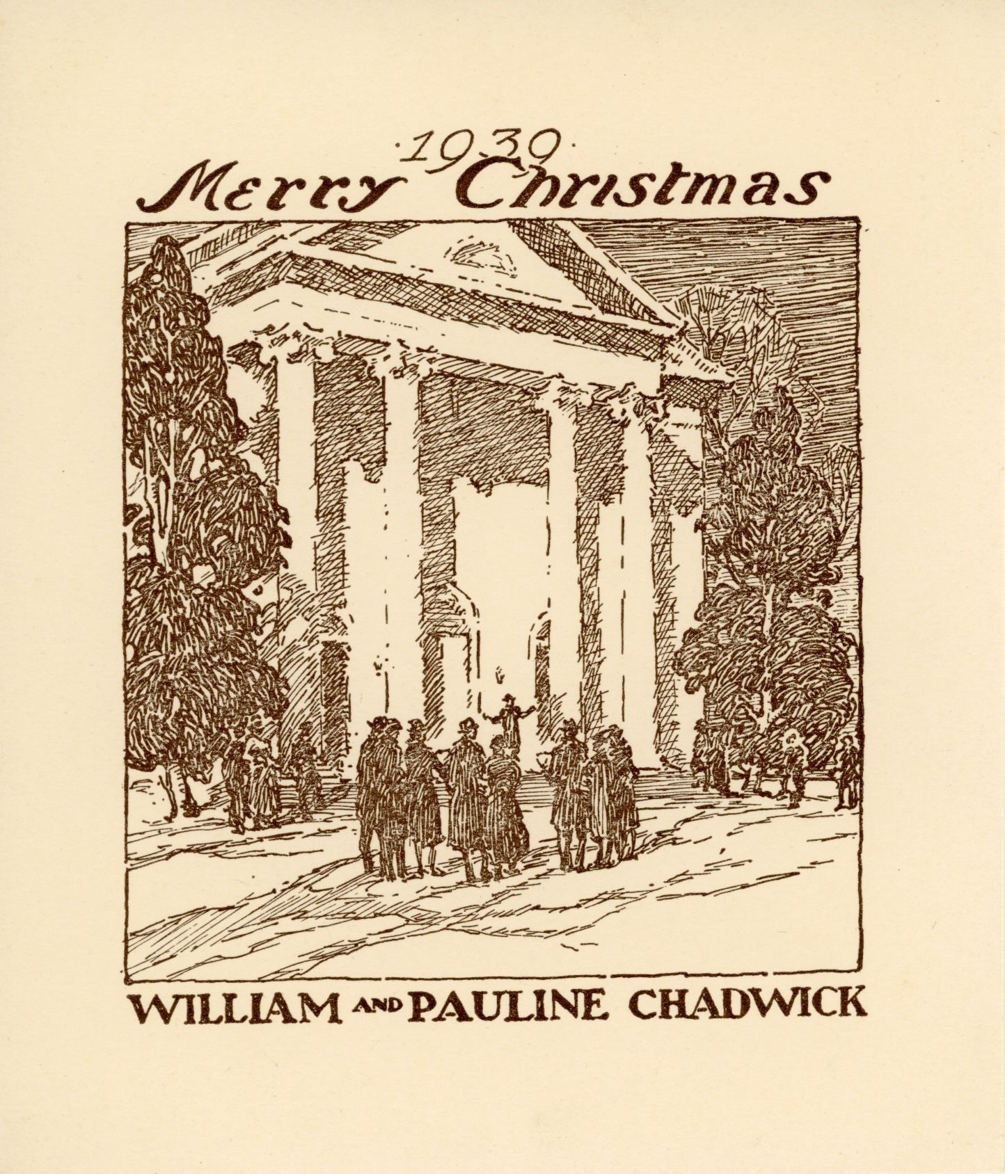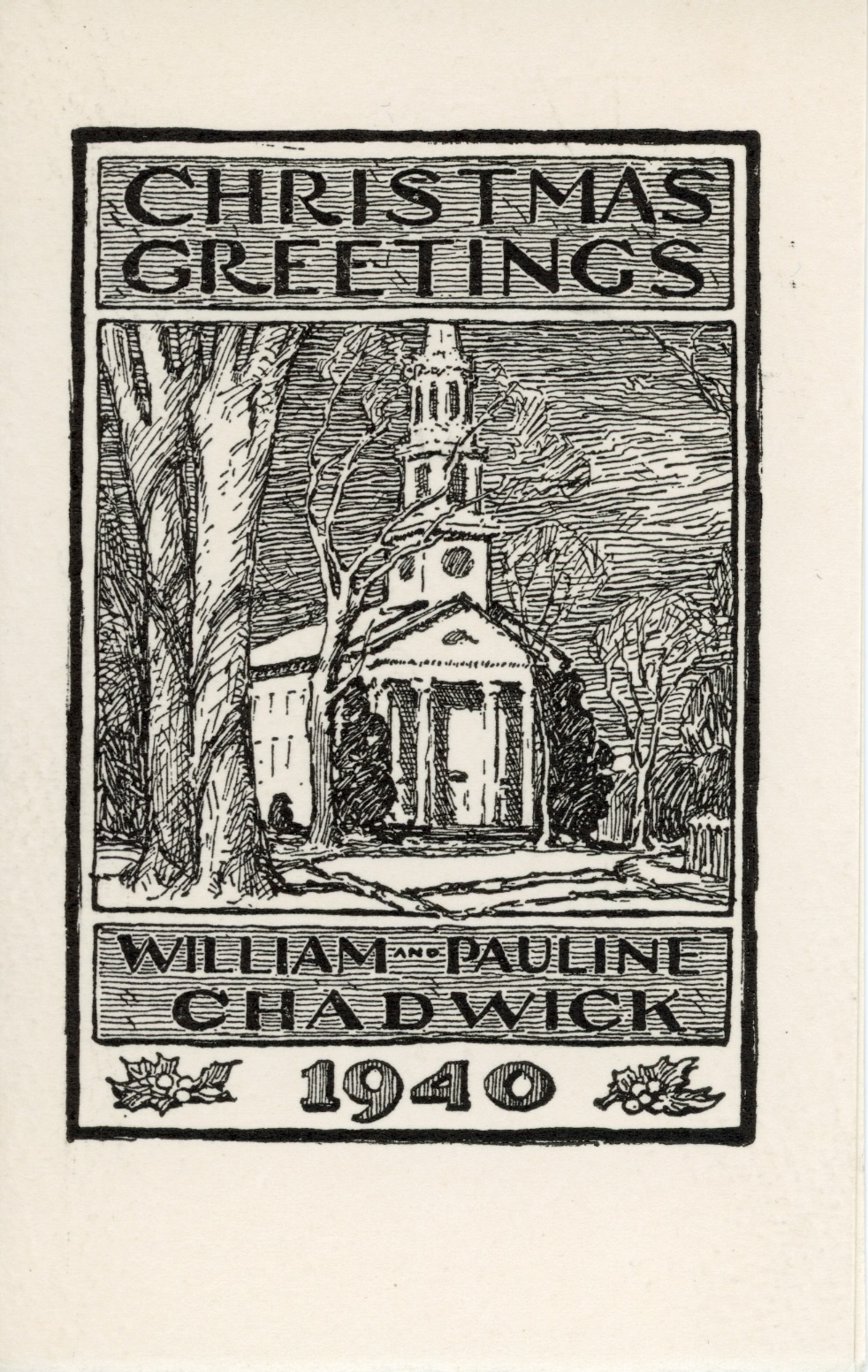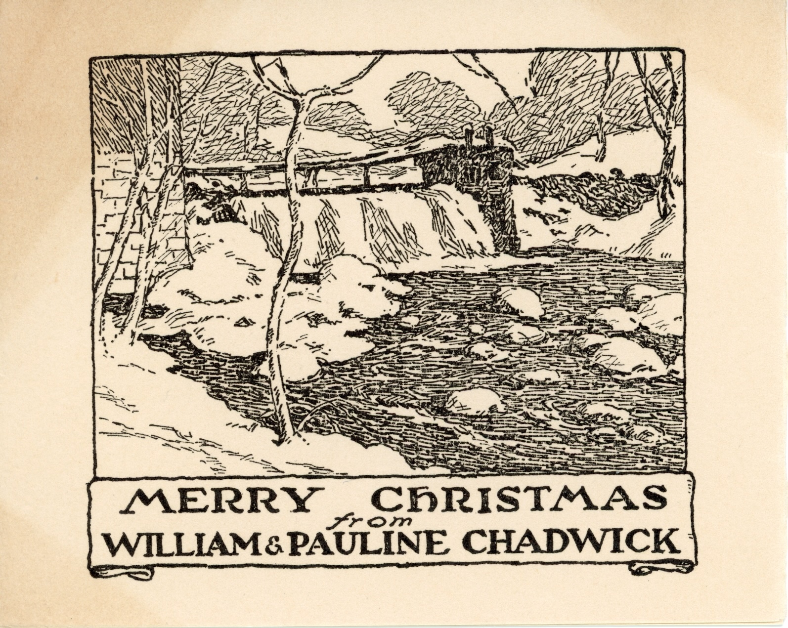 William Chadwick, Merry Christmas from William & Pauline Chadwick, n.d. Lithograph. Jack Hoffman Papers, Lyme Historical Society Archives, Florence Griswold Museum