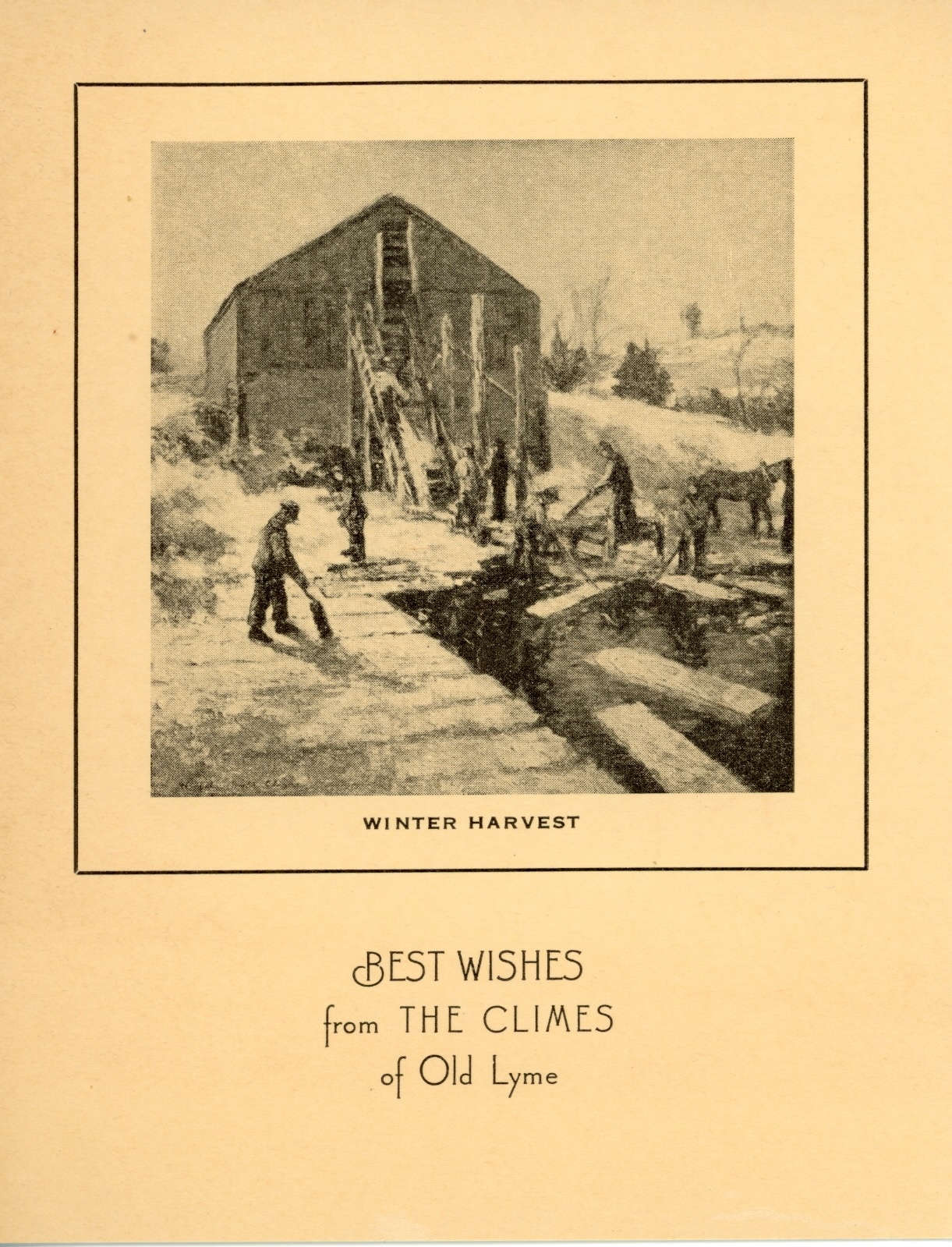 Winfield Scott Clime, Winter Harvest, Best Wishes from the Climes of Old Lyme, n.d. Lithograph. Jack Hoffman Papers, Lyme Historical Society Archives, Florence Griswold Museum