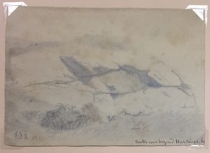 Oliver Ingraham Lay, Rocks over beyond Hardings, 1872. Pencil on paper, Florence Griswold Museum, Gift of George C. Lay