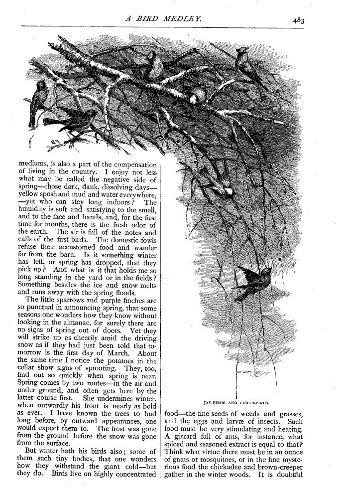 Fidelia Bridges, “Jay-birds and Cedar-birds,” Scribner’s Magazine (August 1876), p. 483