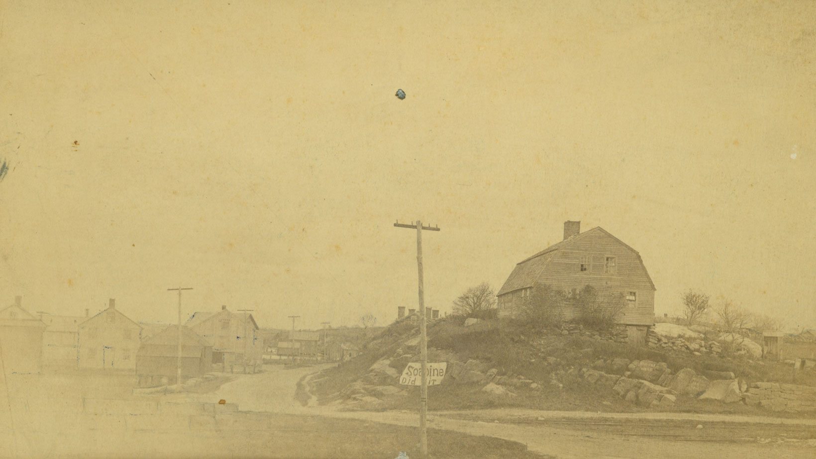 Shad nets at Ferry Point, showing Enoch Noyes house and Reuben Champion house, ca. 1885. LHSA.