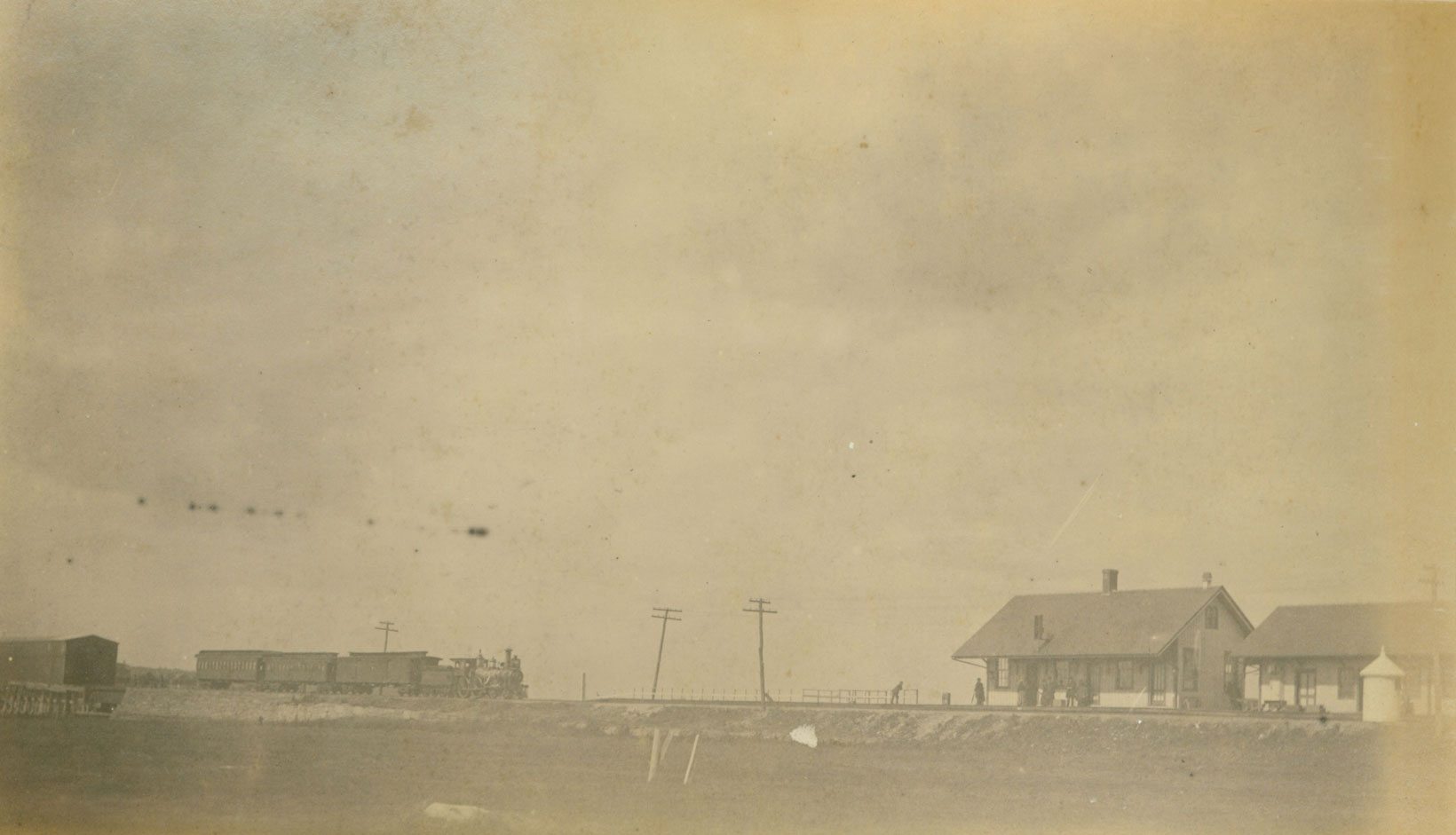 Train crossing after crossing Connecticut River, showing Lyme depot, ca. 1880. Courtesy Carolyn Wakeman.