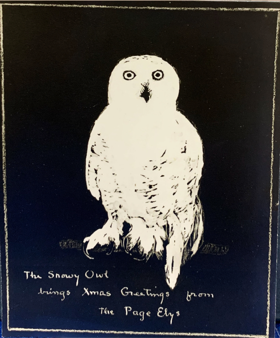 The Snowy Owl Brings Christmas Greetings from the Page Elys, etching