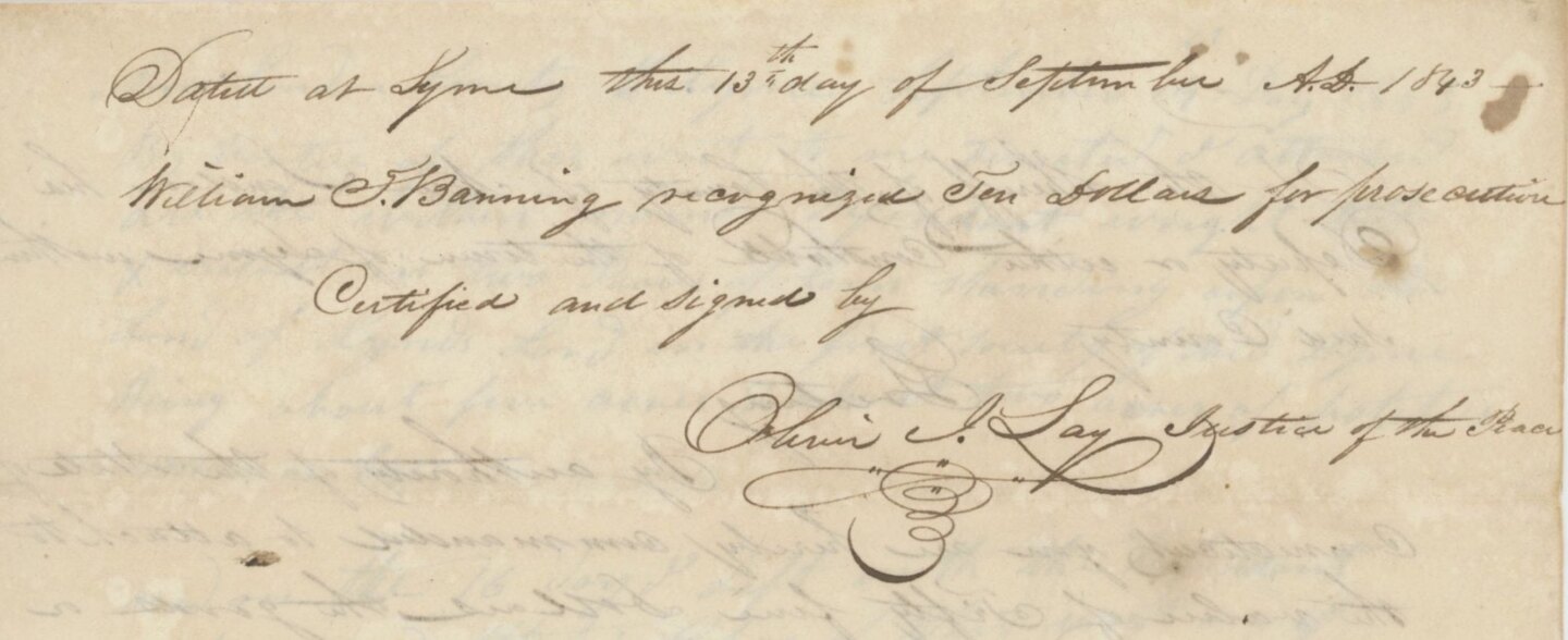 Oliver I. Lay, Case of William F. Banning (September 13, 1843). Lay Papers, LHSA at FGM