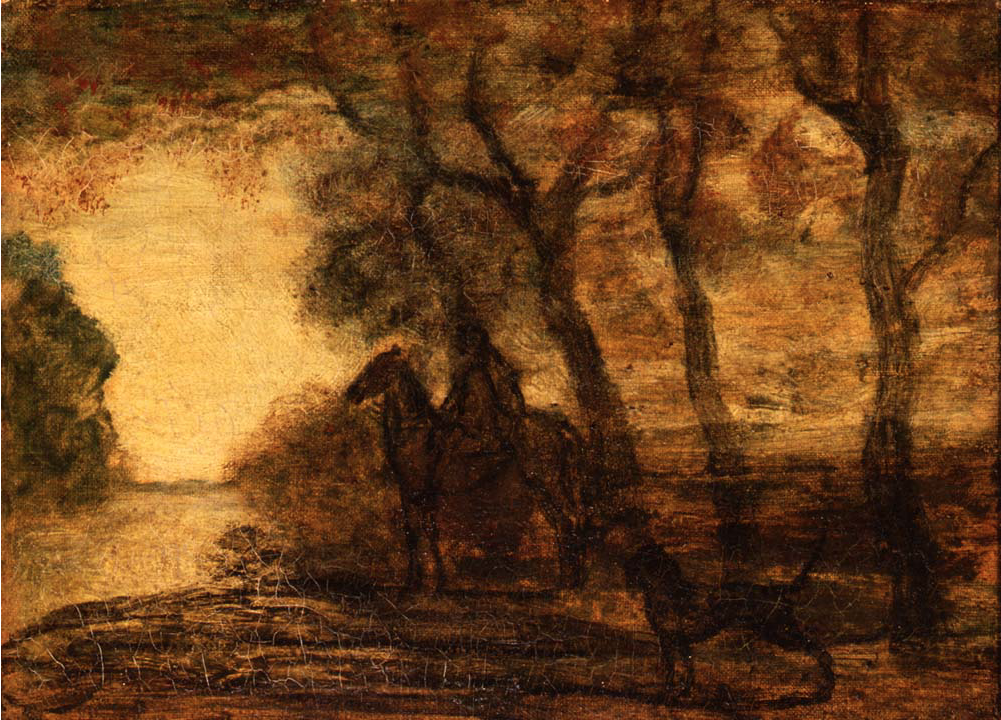 Albert Pinkham Ryder, The Equestrian (Portrait of J. Alden Weir), undated. Oil on canvas, 9 x 12 inches. Portland Art Museum, bequest of Winslow B. Ayer, 35.27