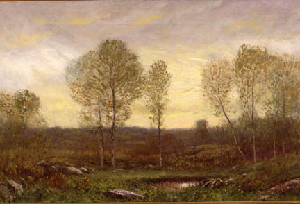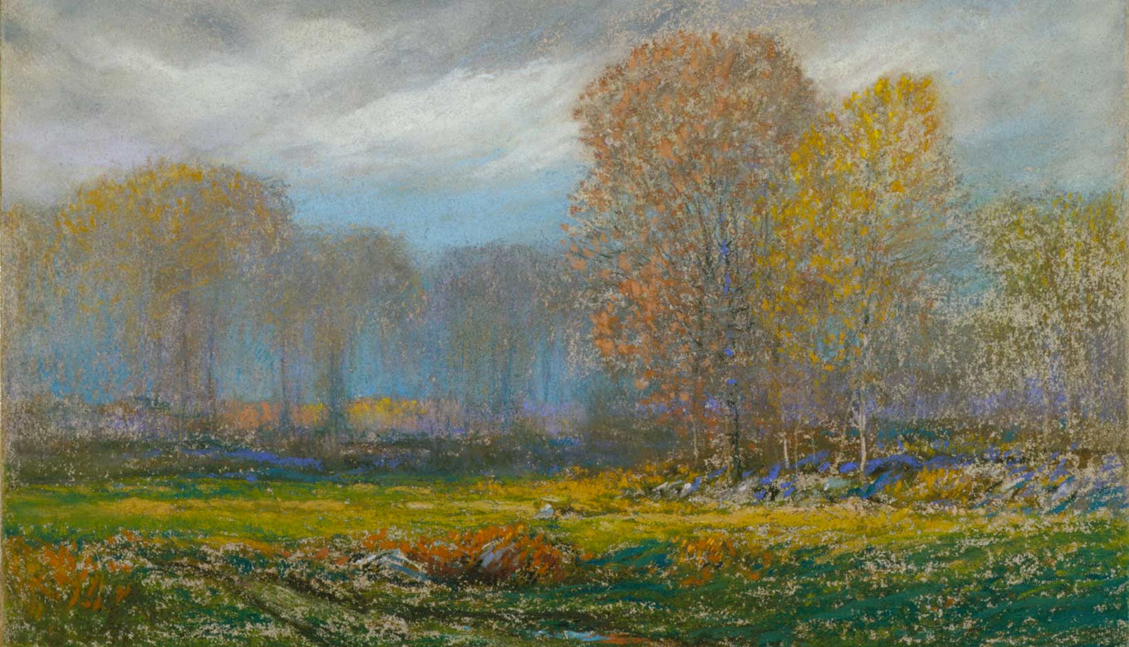 Henry White loved best the two seasons of the year that are the most in flux – spring and fall – so his autumnal “calling card” in the Griswold House dining room represents him well. His portrayal exhibits a synthesis of the Tonalism he learned from Dwight Tryon and admired in work at Old Lyme with the Impressionism that Childe Hassam introduced there in 1903.