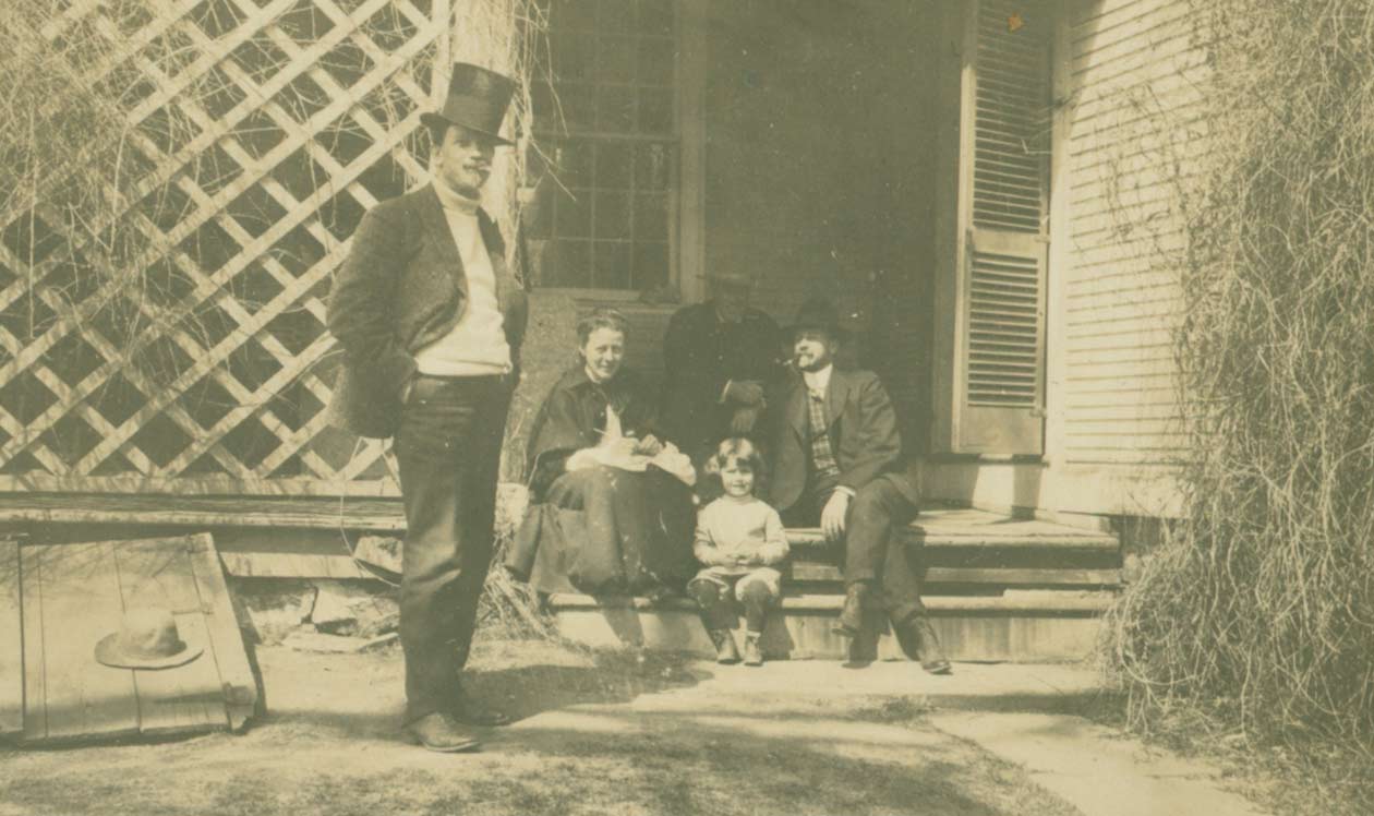 Unlike the other artists in The Fox Chase (above), White is not shown running but rather driving his 1903 Knox air-cooled automobile. White’s car was one of the first in Old Lyme. He would drive it down from Hartford, where he lived until 1914, before moving to the seaside at Pleasant Beach in Waterford. He first visited Old Lyme in the spring of 1903 and stayed in the boardinghouse with his family. Later, he rented another building called “The Brickstore” just up the road. As his son, artist Nelson C. White noted “In the early 1900s Old Lyme was a sleepy, country village with a very few carriages or horses going by now and then a yoke of oxen from a farm nearby. My father was the first person to introduce a serpent in to this idyllic Eden by having bought a 1903 Knox air-cooled automobile — one of the earliest models — a run about which steered with a tiller instead of a wheel and which of course attracted much attention.” White sheltered his Knox automobile in a barn opposite the “Barbizon Oak,” so-called because it was so often portrayed by Henry Ward Ranger and the other Old Lyme Tonalists.