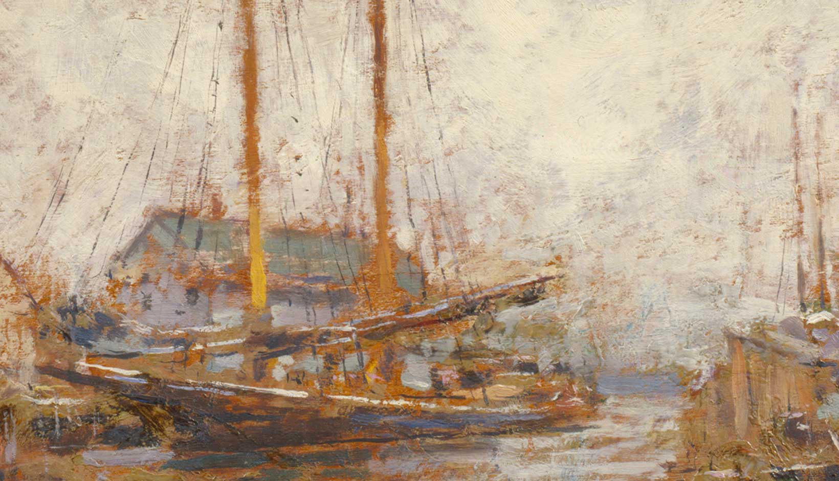 Quite different from the artists who came for the summer, Henry C. White preferred the transitional seasons of spring and fall, complaining that the summer foliage was like “too much spinach!” So he planned his travels to the shore in such a way as to extend the length of the season by moving from Hartford, to Old Lyme, to Waterford, in succession.