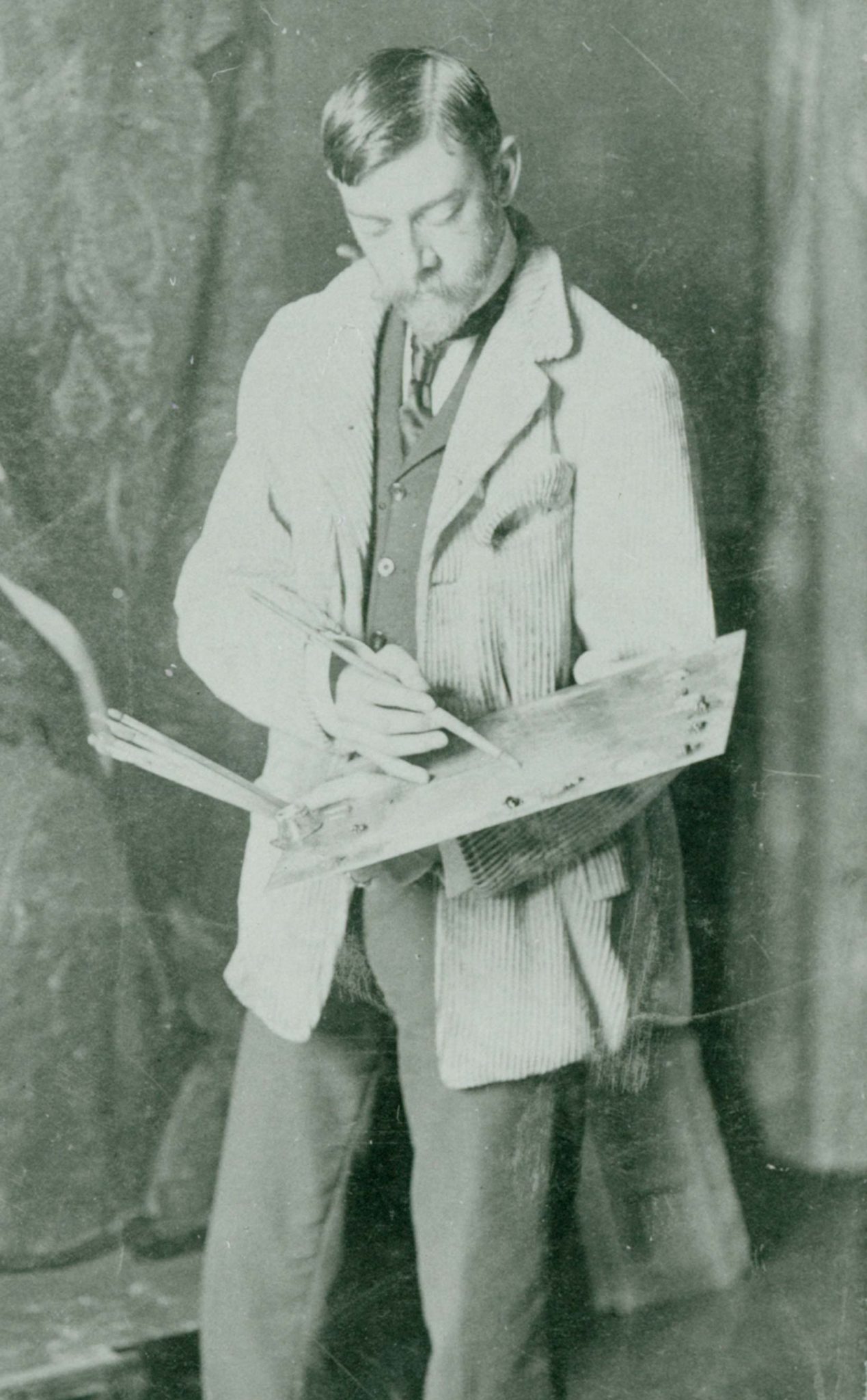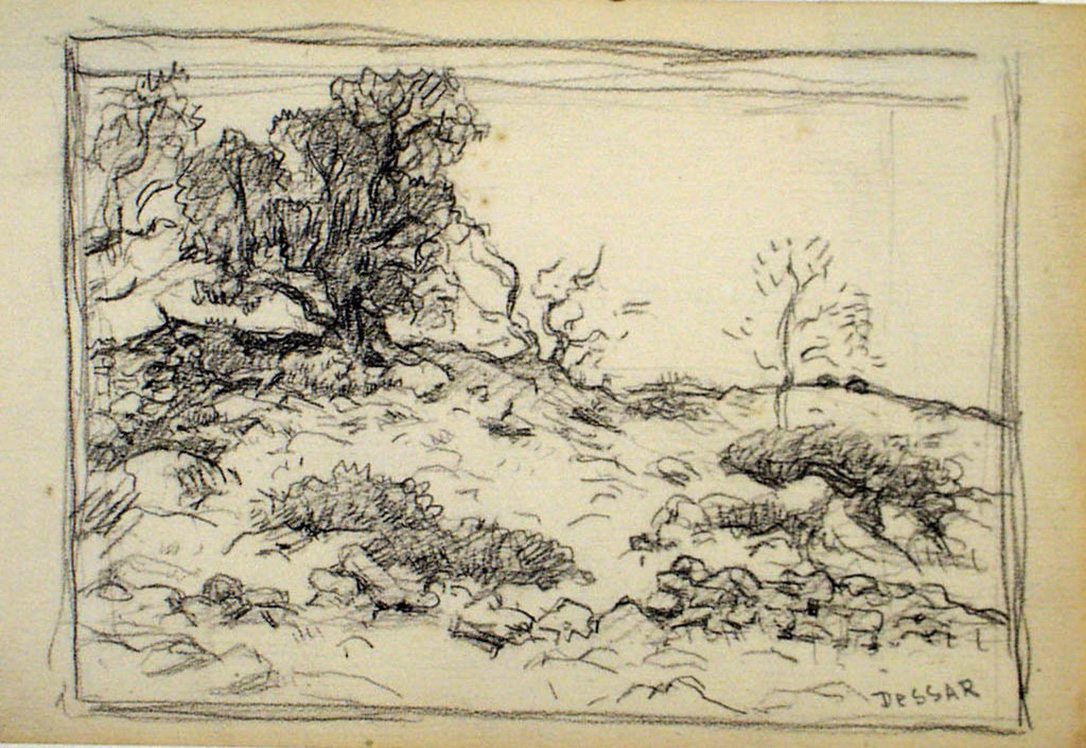 After his marriage to fellow art student Elizabeth Coombe in 1891, Dessar stayed in a country inn in Giverny, France (the same village famous French Impressionist Claude Monet called home). Angered, however, after learning that the landlord had sold the panels Dessar had painted on a door, he and his bride left and purchased two acres in Étaples, France. At first they only could afford to build a small house with two rooms, but Dessar vowed to add a room to the house each time he sold a painting, and by 1899 his home was “rambling, and gracious.” The Dessars sold the property in France once they discovered Lyme. Dessar’s wish to establish an American Barbizon was realized when he visited Miss Florence’s boardinghouse with Henry Ward Ranger in the summer of 1900. This would be a place for artists who emulated the realistic but poetic rural landscapes that artists painted in the French village of Barbizon in the 1830s. Many late 19th-century American artists loved this art, which they often painted in grayed or toned-down colors. Their paintings were meant to prompt emotion and meditation about land, water, sky, and the meaning of life.