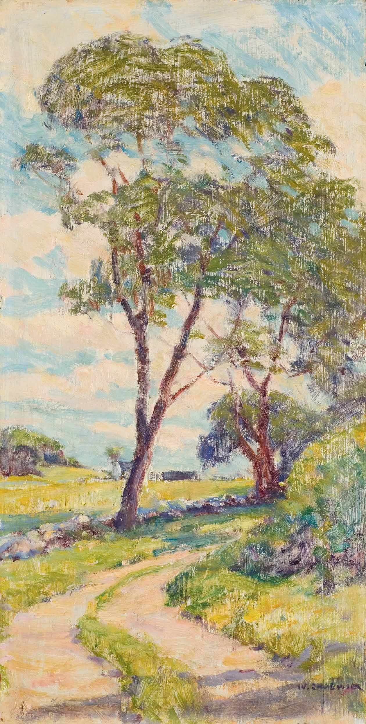 He and his mother experienced the uneven ride that most professional artists are all too familiar with, but they were unable to cope with the ups and downs. They spent money wildly when any came their way, saved nothing, and were periodically impoverished. Although he would become known as one of California’s best painters, Fullonton often resorted to selling paintings for a dollar or for food. He died destitute. Sadly, his behavior at Old Lyme proved to be prophetic. Often he could not or did not pay his bills.