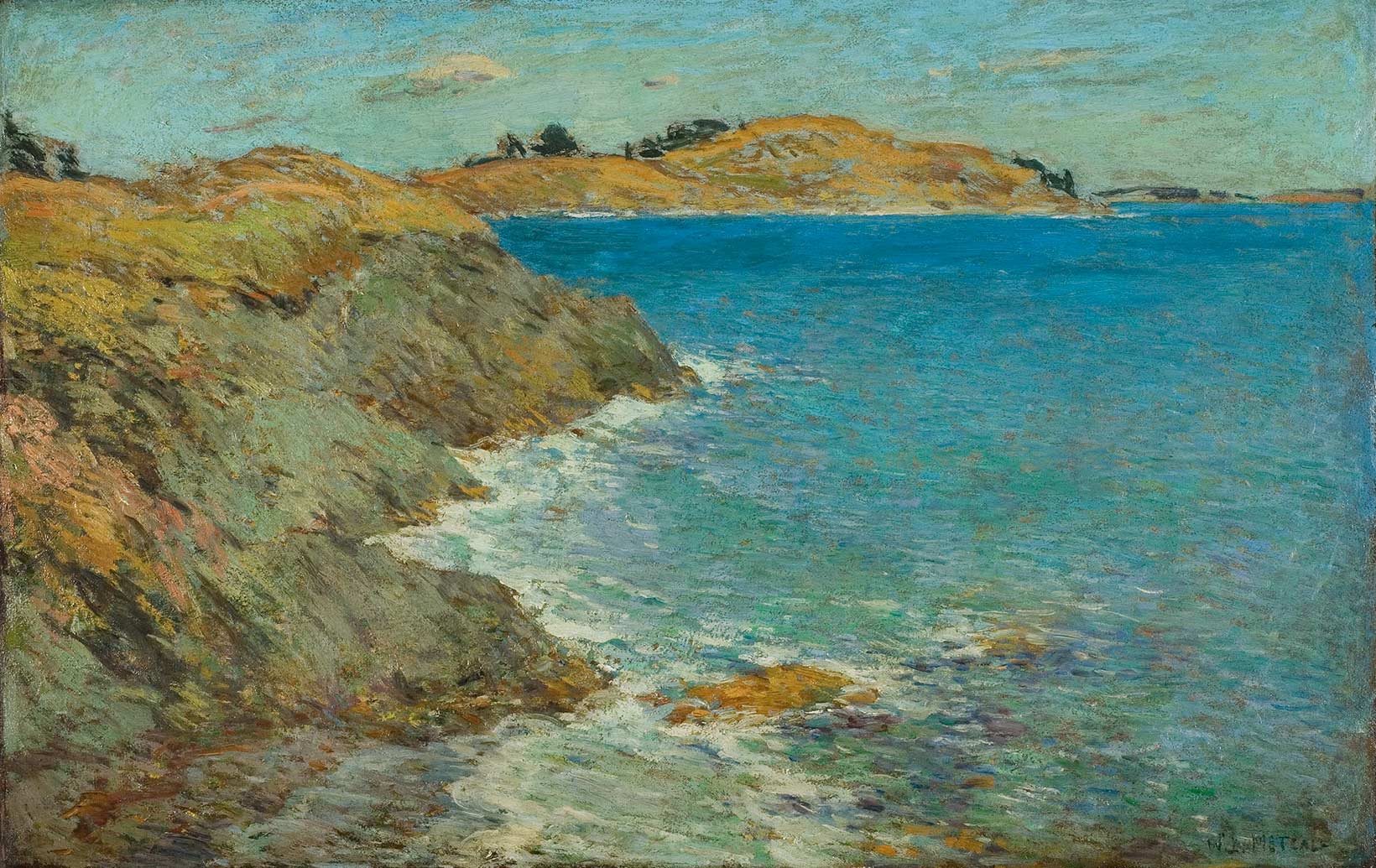 WILLARD LEROY METCALF (1858–1925), "BEACH AND HEADLANDS," 1907-08. OIL ON WOOD PANEL. FLORENCE GRISWOLD MUSEUM, GIFT OF THE ARTIST