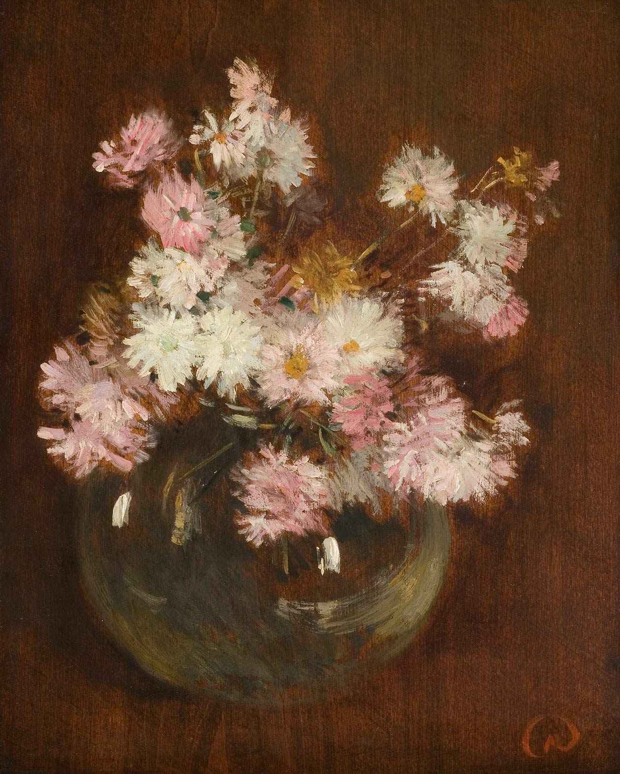WILLARD LEROY METCALF (1858–1925), "FLORAL STILL LIFE," 1907-08. OIL ON WOOD PANEL. FLORENCE GRISWOLD MUSEUM, GIFT OF THE ARTIST