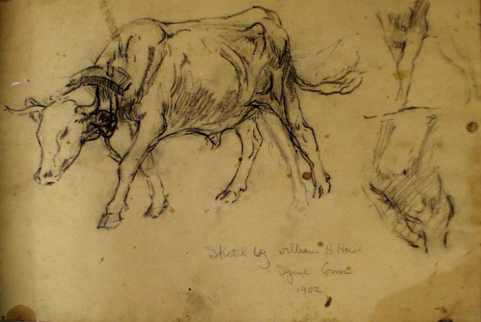 William Henry Howe decorated a door in the Griswold House parlor in the summer of 1901 with a Normandy bull lying in a stable (below).
