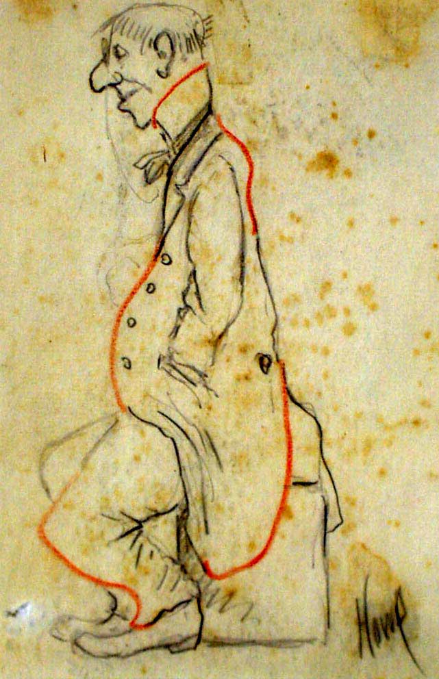 Howe was not merely one of the artists to appear in The Fox Chase, but also somewhat of an uninvited collaborator. After Howe’s dog Weeksie (also on the panel) died, Howe asked Poore to paint a rock over him, claiming the image of the dog made him too sad to eat. He also scratched out the face of fellow artist George H. Bogert with a penknife after learning he allegedly did not pay his board bill. Fortunately for Bogert, the original artist Henry Rankin Poore painted his face back in years later.