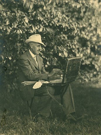 Robinson stayed in the boardinghouse off and on from 1905-1920, but moved in full time beginning in 1921 until Miss Florence died in 1937. He was one of the first members of the Lyme Art Association, and eventually was their president. Robinson had a long-term studio on the property very near the brook that ran between the boardinghouse and the Lyme Art Association.