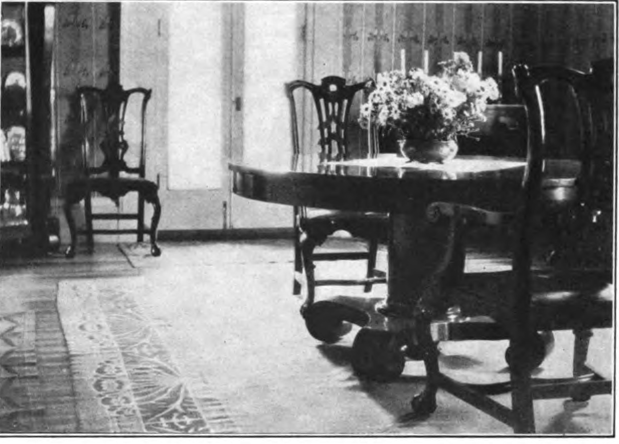 Redecorated dining room in the White House at Tantummaheag. Country Life in America (May 1913).
