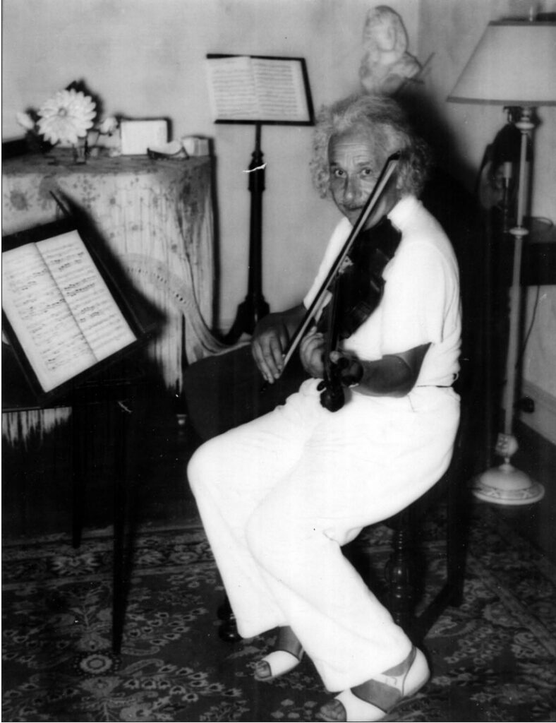 Einstein playing violin. (Photo courtesy of the Southold Historical Society and the Family of Reginald Donahue.)