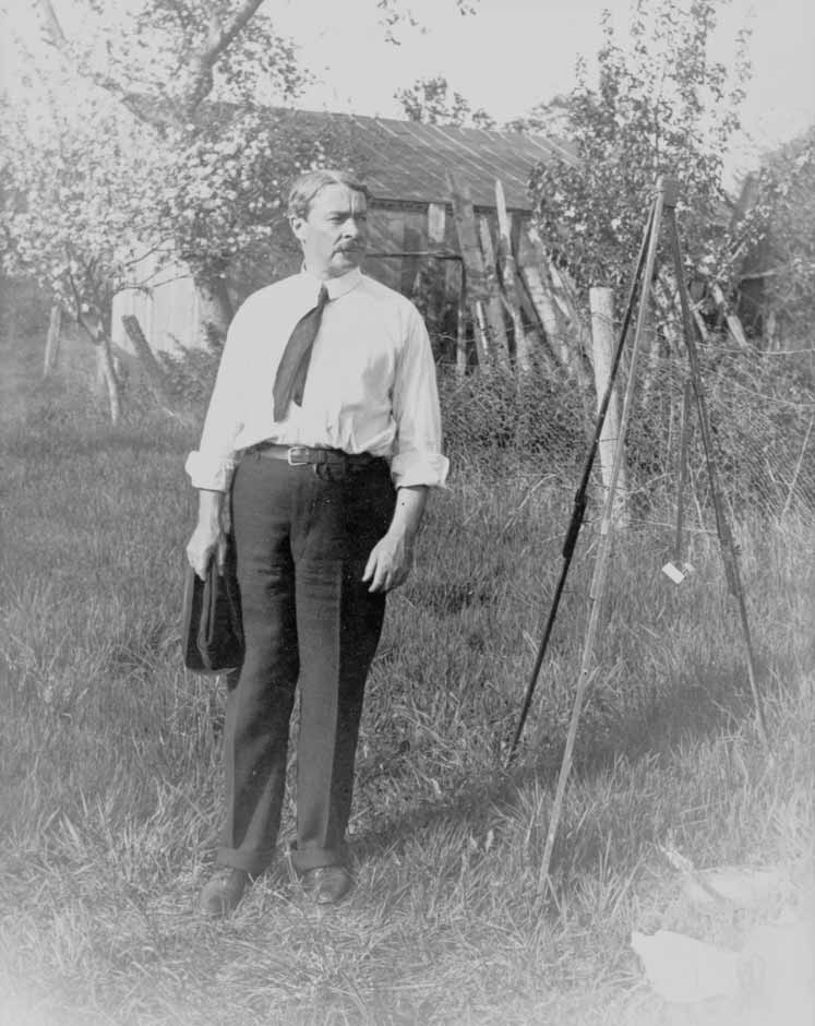 Childe Hassam outside his studio on the Griswold property, 1904. Photographs: Lyme Art Colony, Lyme Historical Society Archives at the Florence Griswold Museum
