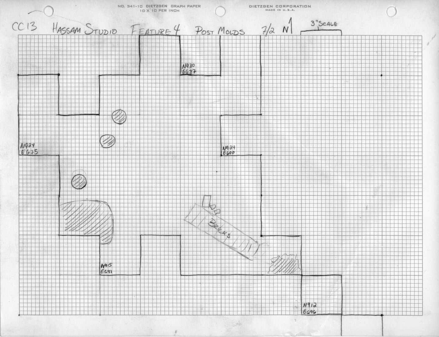 Map of Hassam studio findings, 1998 Archaeological Dig Collection, Lyme Historical Society Archives at the Florence Griswold Museum