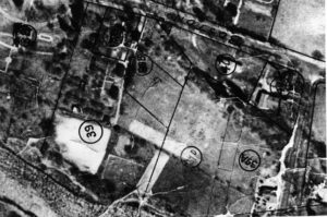 Aerial photograph showing Griswold property, 1929. Copy print. 1998 Archaeological Dig Collection, Lyme Historical Society Archives at the Florence Griswold Museum