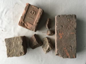 Bricks excavated from the Hassam studio (top); bottles under the studio sill (bottom). 1998 Archaeological Dig Collection, Lyme Historical Society Archives at the Florence Griswold Museum