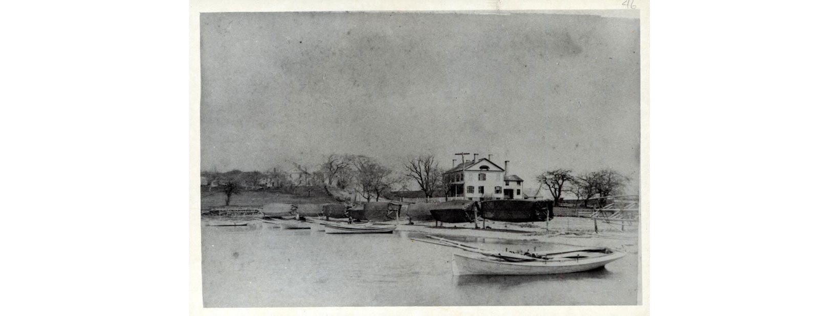 Feature Photo (above): Richard Sill Griswold, Jr., Shad nets at Ferry Point, with Reuben Champion house and Enoch Noyes house, ca. 1885. LHSA