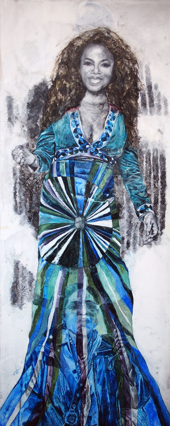 Born in Israel in 1978 and educated at Wesleyan University and Brooklyn College’s MFA painting program, Lahav was inspired to begin The Great Americans portraits after watching a 2005 Discovery Channel series that asked viewers to select who they thought were America’s most notable figures, past and present. His portrait series, Lahav says, reflects “the push and pull between who are the people that we see as being great Americans and who actually achieved greatness.” Lahav’s work centers on oversized images of famous figures, whose updated costumes incorporate references from history, legend, art, and advertising that have shaped our collective perception of each person—or push against those perceptions. At the heart of the series is Lahav’s question to viewers about the validity of any canon, with their inherent value judgments and exclusions.