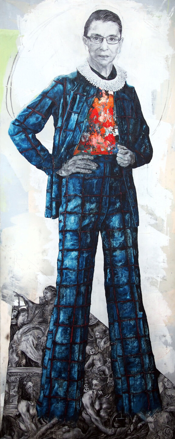 Who are our national heroes? Benjamin Franklin? Rosa Parks? Albert Einstein? Lahav’s nearly seven-foot-tall paintings of 30+ famous figures are a celebration of America layered with references to history, lore, and imagery that shape our understanding of these larger-than-life icons. Through his psychologically complex and cheeky treatment of iconic figures from politicians to celebrities, Lahav explores the nature of cultural identity.