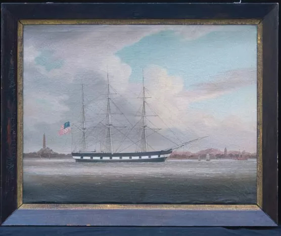 Unidentified artist, China, N. L. & G.  Griswold’s ship Niantic in port at Ningpo, ca. 1838. Oil on canvas, 22 x 27 in. NPS Photo, SAFR 22386