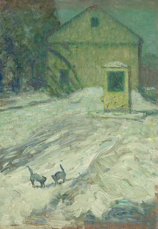 The artists tolerated them only to a point, controlling them with squirts of ice-cold water. “No sooner were the Wilson ladies seated at the other table then on came the cats. Presently a kitten, not one of the original sixteen, leaped upon Mrs. Wilson’s lap, then with another spring landed upon the table beside her soup plate. While the waitress made a dive for the kitten, I ducked for my tin syringe, charged it from the ice-water pitcher, and then letting drive, I squirted stream after stream in many directions, and drove the bounding cats helter-skelter. I could even hit them on the fly, and those forceful streams of ice-water settled the cat nuisance for many a day.” – Artist and author Arthur Heming, Miss Florence and the Artists of Old Lyme, c. 1938