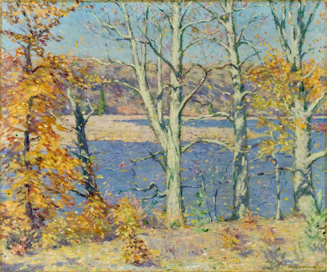 In the years after the Civil War changes in shipbuilding technologies caused the population of Lyme to drop drastically, allowing the region to settle into a quiet village surrounded by small farms and light industry. This was the place the artists found thrilling to discover. “The variety in the landscape would drive an artist to distraction. It is a singular mixture of the wild and the tame, of the austere and the cheerful,” wrote a visitor to Lyme in 1876. And writer Katharine M. Abbott expounded in 1907: “What an indisputable voucher for the fetching loveliness of Lyme is its ever-increasing colony of painters. In the lower Connecticut Valley, the uplands are full of surprises and everywhere you may go, you will see about you pictures which would drive most artists wild with joy.”