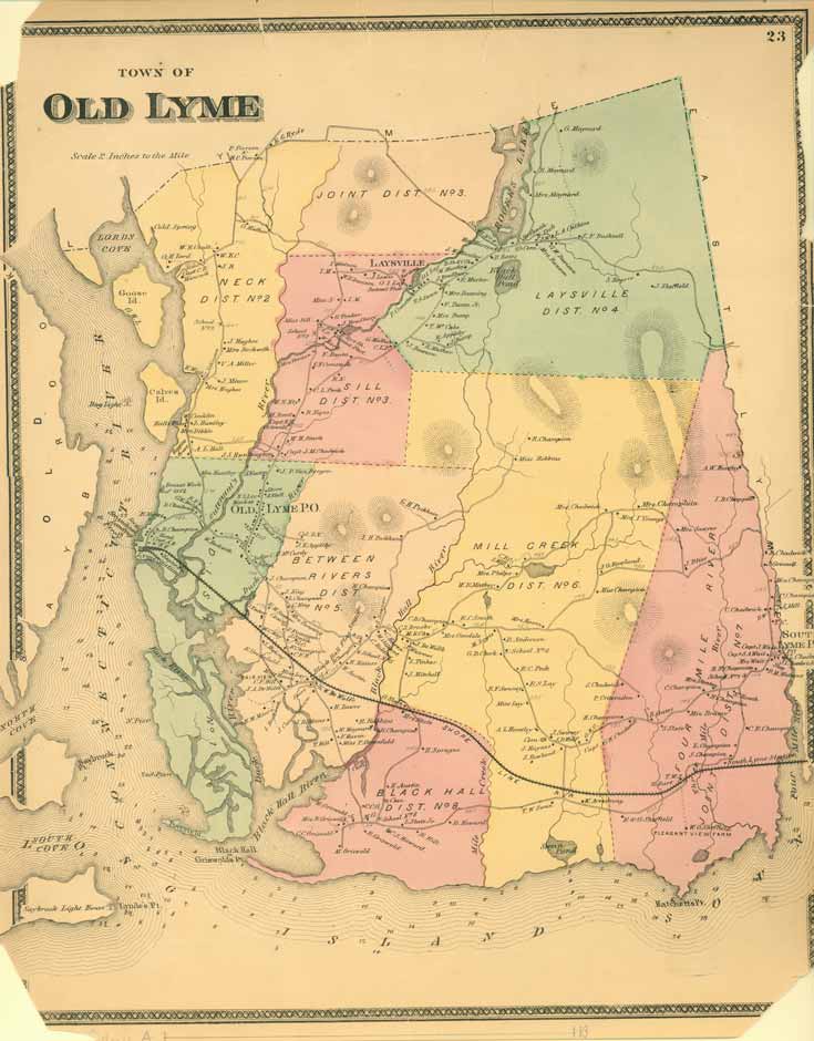 The Lyme side of the river was inhabited by English settlers, beginning in 1645 when a tract of land was given to Matthew Griswold. Twenty years later it was established as a township with its own minister and thirty families in residence. For the next two hundred years the area would thrive with small farms, boat building, and small mills along the many waterways.
