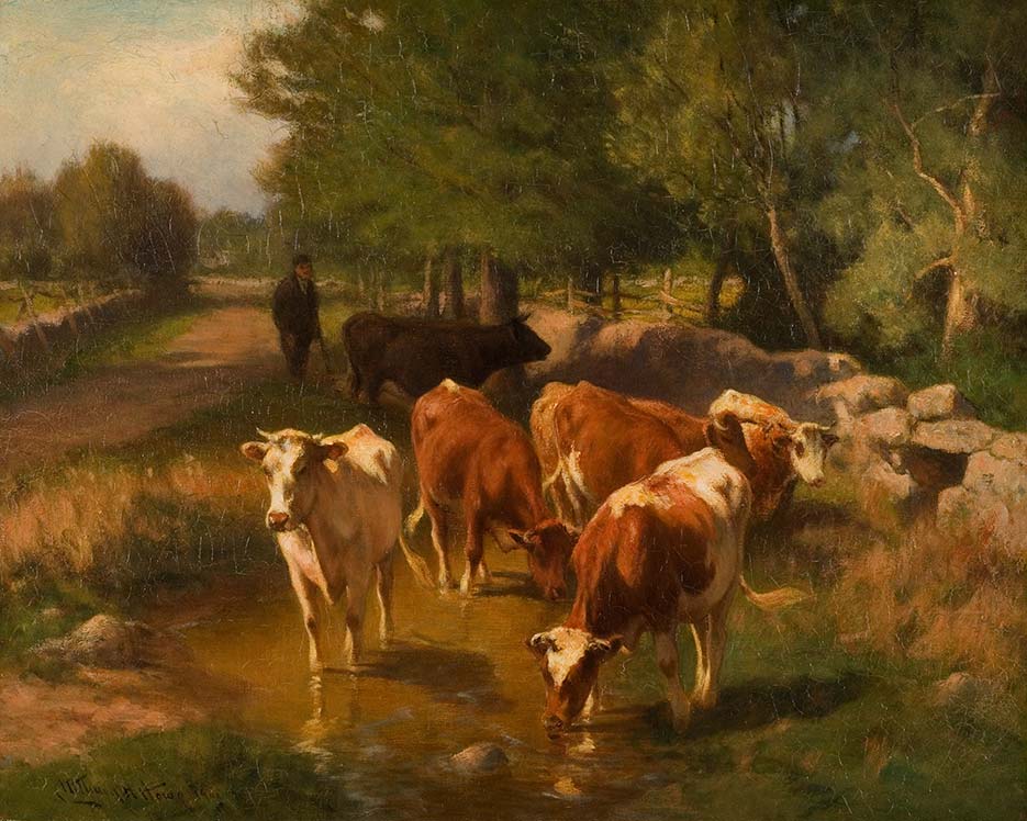 With Henry Ward Ranger as their leader, these pioneers of the Lyme Art Colony were fixed on establishing an American version of the French Barbizon group of painters. Working in the French countryside in an area known as Barbizon, near the Forest of Fountainbleau (south of Paris and reachable by train in an hour’s time), a group of landscape painters sought to capture the unspoiled countryside and rural traditions before they were eclipsed by modernity.