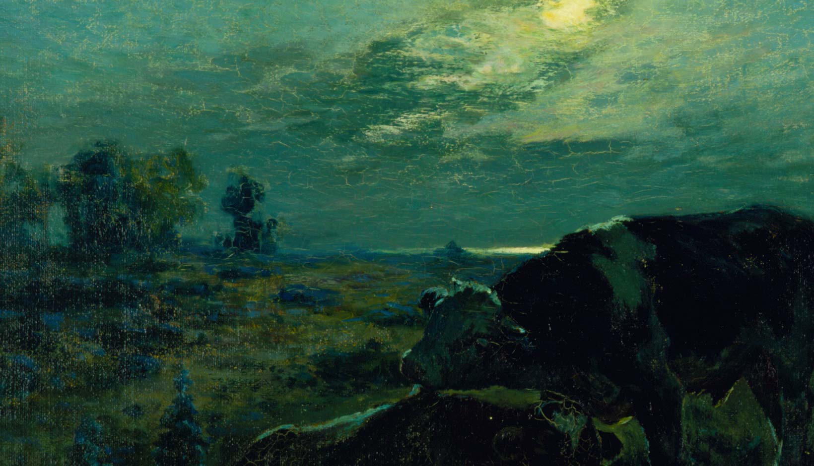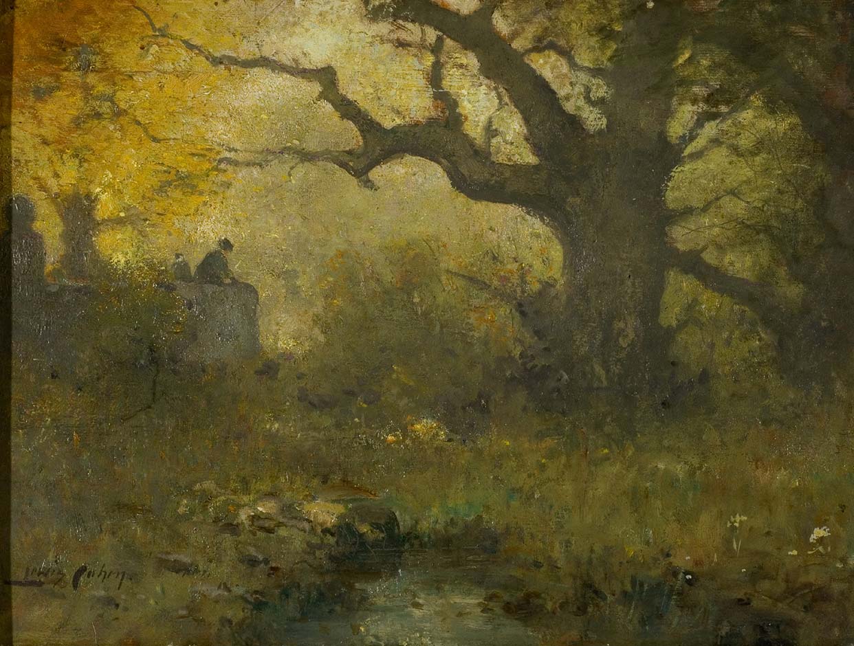 They painted dimly lit woods and rural settings, and finished them with a layer of toned varnish. Critics derisively referred to them as the “baked apple school” or “brown gravy school” for their use of dark, more somber palettes, but the Tonalist artists sought to create complex images steeped in nostalgia that would look perfectly at home in a collection of Old Masters.